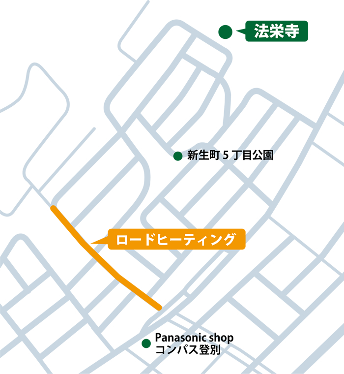 当寺の近隣の道路にはロードヒーティングが施されております。積雪や路面の凍結の心配なく、お車でも安全にお越しいただけますので、どうぞ安心してお参りください。